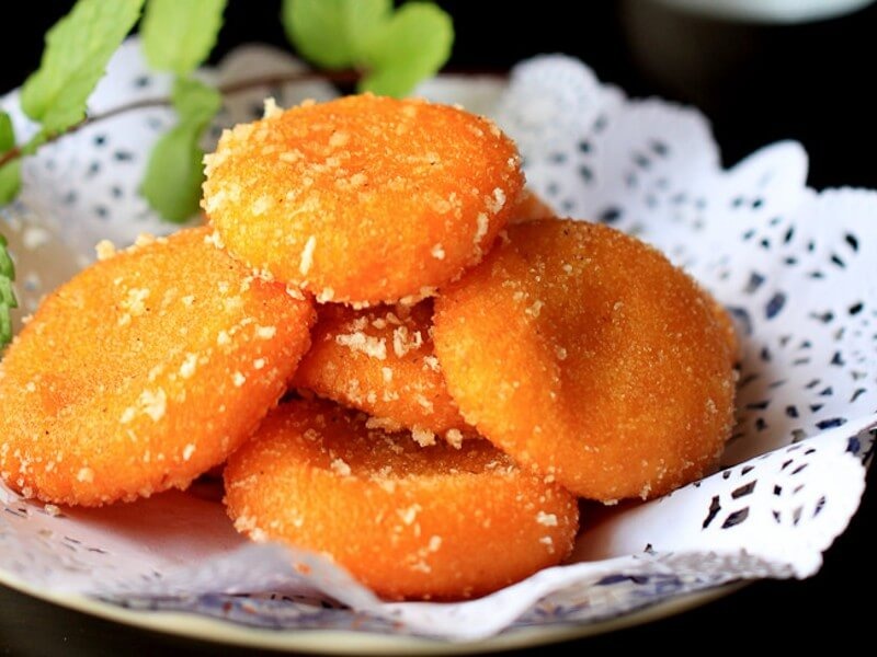 Bánh bí đỏ là món tráng miệng tuyệt vời. Bí đỏ được nghiền nhuyễn, trộn cùng với bột, đường, trứng và gia vị như quế, đinh hương, tạo nên món bánh thơm ngon, mềm mịn.