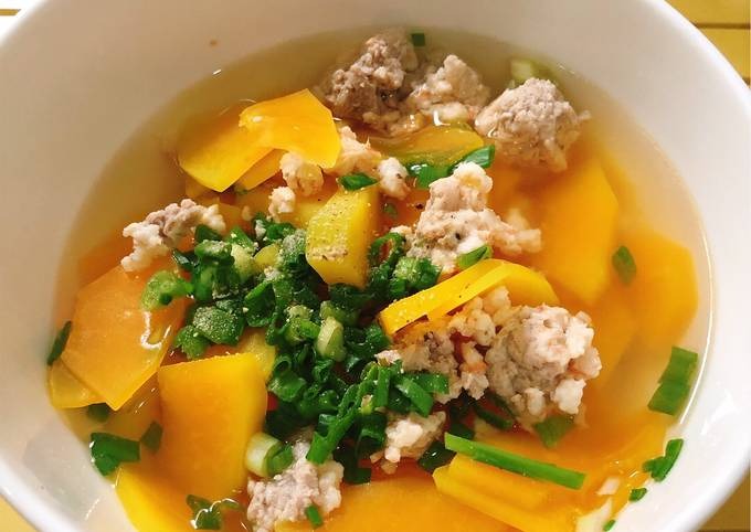 - Cho đu đủ vào nấu cùng sườn, hầm đến khi đu đủ chín mềm.