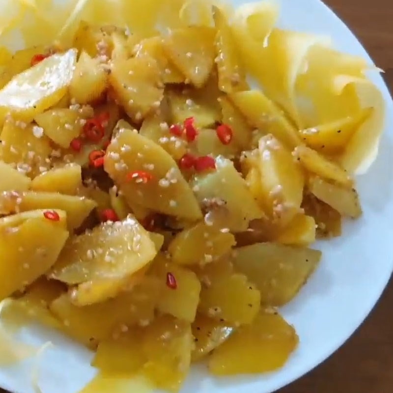 - Xào đến khi đu đủ chín mềm và thấm gia vị.