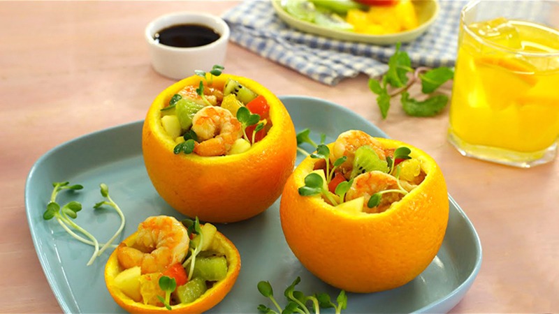 Nguyên liệu: 2 quả cam, rau xà lách, hạt óc chó, dầu ô liu, một ít muối và tiêu.