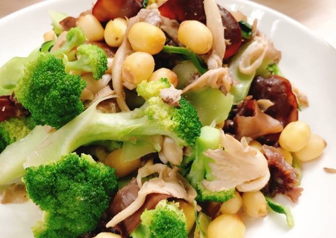 - Trộn đều hạt sen và rau xanh, sau đó thêm nước sốt vào và trộn đều.