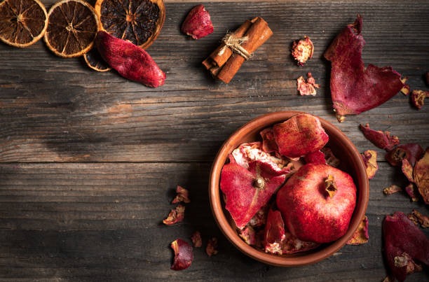 Nghiền vỏ quả lựu khô thành bột mịn.