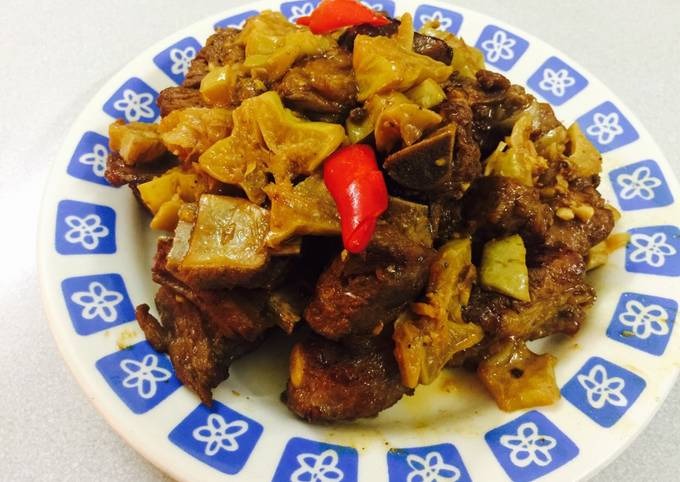 Phi thơm sả, tỏi, ớt, xào sườn cho săn lại, nêm nếm gia vị.