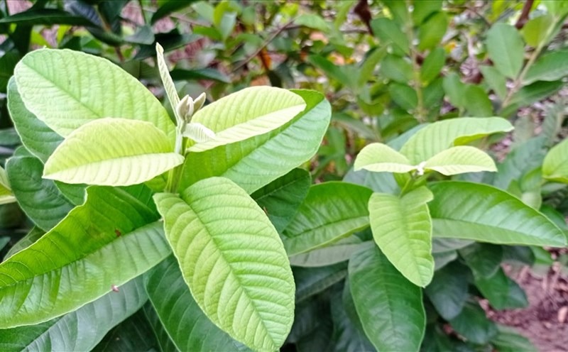 Hình Dạng: Lá ổi có hình dạng tròn hoặc hình bầu dục, có gân nổi rõ ràng.
