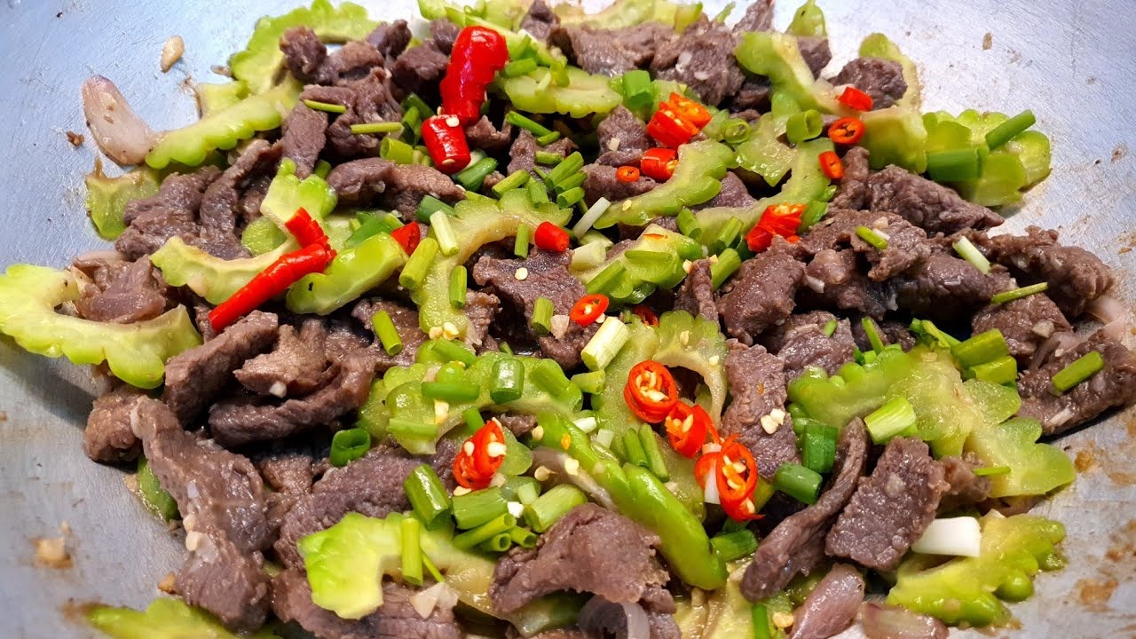- Cách làm: Rửa sạch khổ qua, thái lát mỏng. Thịt lợn thái mỏng, ướp gia vị. Xào thịt với khổ qua cho chín. Món này không chỉ ngon miệng mà còn giúp thanh nhiệt, giải độc và bổ sung dưỡng chất.