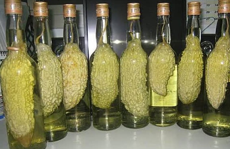 - Cách làm: Rửa sạch khổ qua, phơi khô, cho vào bình ngâm cùng rượu trắng trong 2-3 tuần. Uống mỗi ngày một chén nhỏ để hỗ trợ tiêu hóa và thanh nhiệt cơ thể.